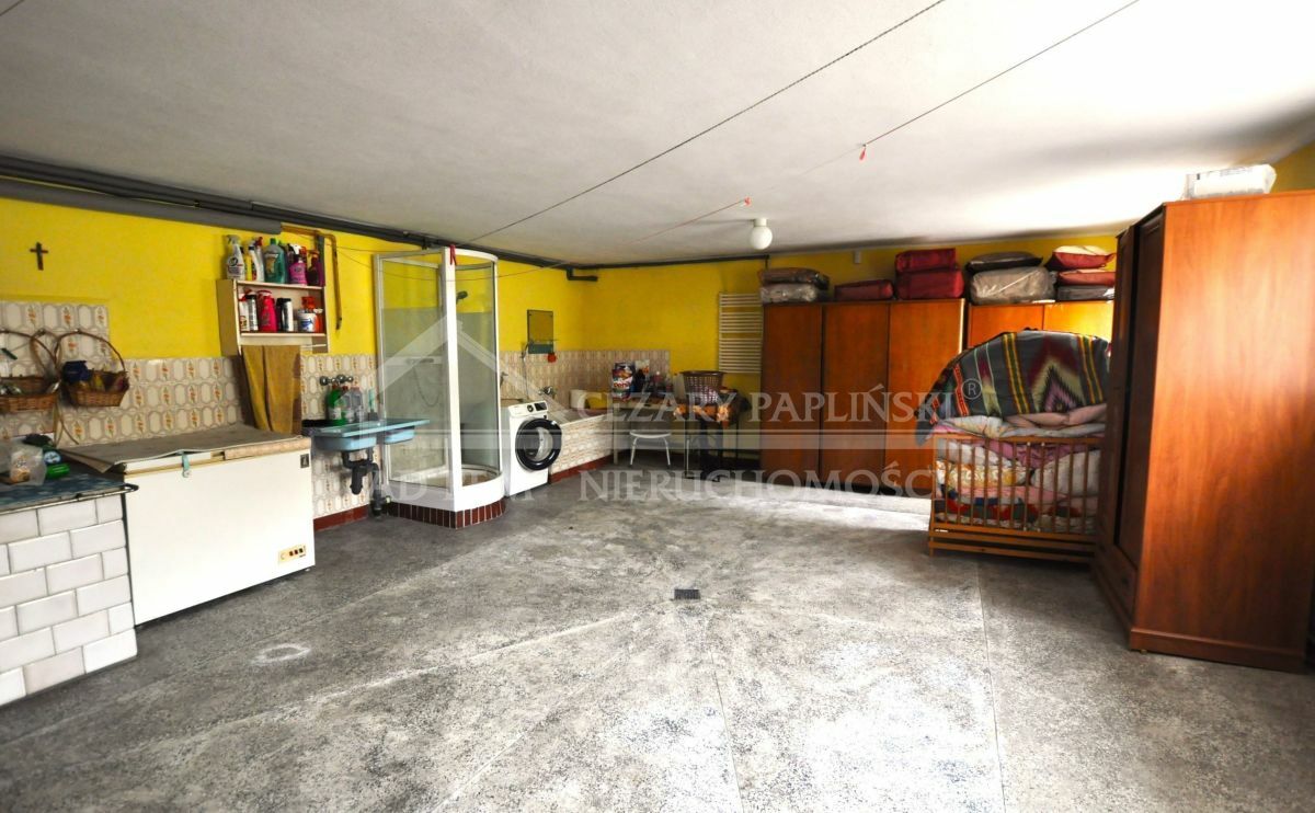 Wysokie podpiwniczenie: pokój z oddzielnym wejściem idealny na gabinet, kancelarię lub działalność gospodarczą, łazienka z WC, pralnia-suszarni z prysznicem oraz kotłownia. Na poziomie pierwszym znajduje się przestronna kuchnia o powierzchni około 18 m², salon o imponującej powierzchni około 40 m² z kominkiem i ogrzewaniem powietrznym, wyjściem na taras, WC oraz korytarz. Na poddaszu mieści się trzy pokoje (ok. 16 m², 20 m² i 26 m²), dwa z nich połączone balkonem, oraz łazienka z WC. Dodatkowo, strych poddany adaptacji, w pełni ocieplony watą szklaną, z dostępem na dach.