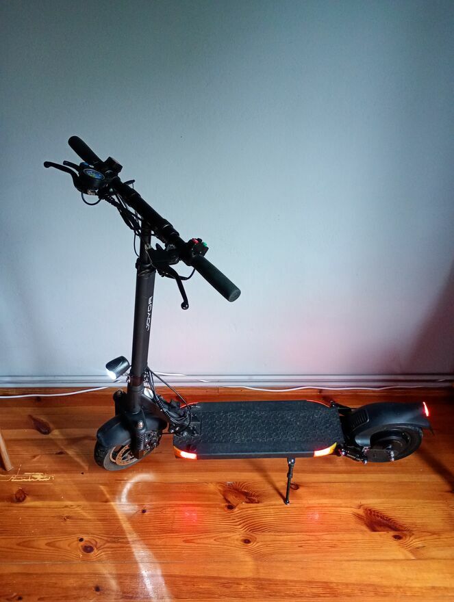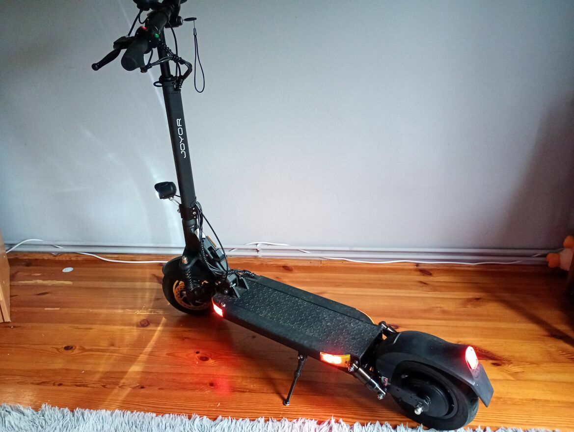 Hulajnoga JOYOR6S Praktyczne i wygodne rozwiązanie dla każdego miłośnika elektrycznych środków transportu.Jest zadbana i odblokowana(prędkość max 45 h) wymienione klocki i (tylna dętka )opony w dobrym stanie, stan oceniam na dobry Ladowanie baterii do 6godz